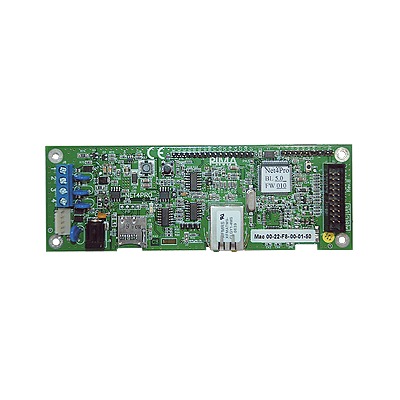 Comunicador TCP/IP compatible con los paneles PIMA HUNTER 8, 832, 896 Y 8144. Para envío a través de Internet o red local a receptora Sentry.